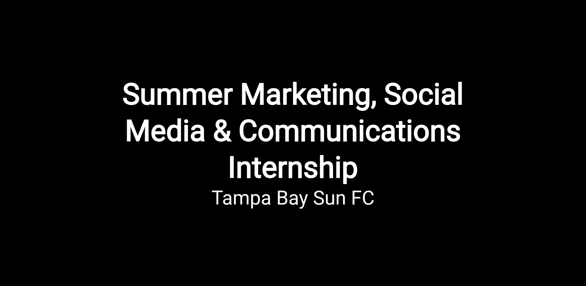 Tampa Bay Sun FC is seeking passionate and motivated individuals to join our Marketing, Social Media, and Communications Internship program through the Summer Season of 2026. This internship is an excellent opportunity for students eager to kickstart their careers in the sports industry while gaining hands-on experience in grassroots marketing, social media, communications, and community engagement.