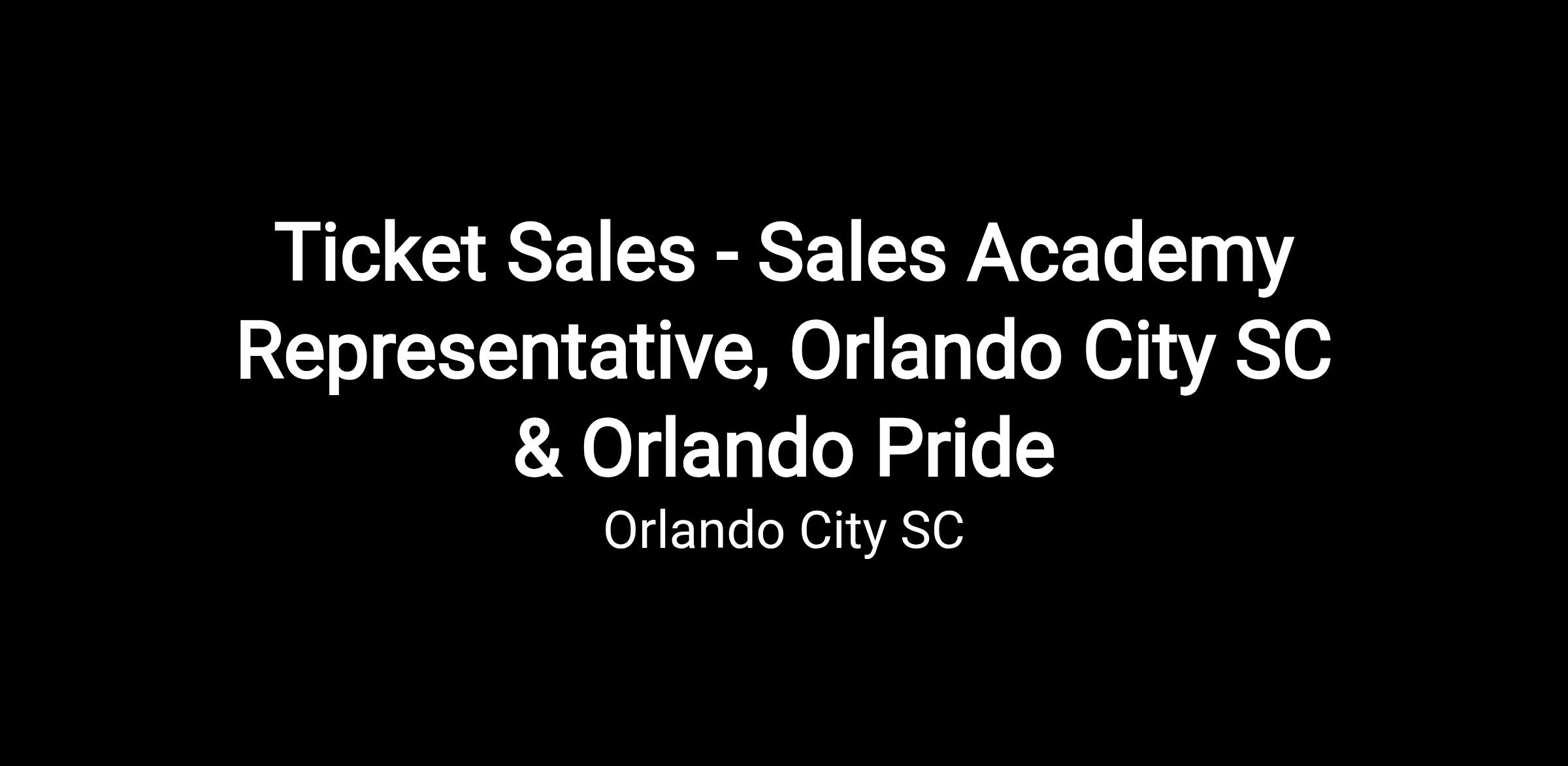 Ticket Sales - Sales Academy Representative, Orlando City SC & Orlando Pride