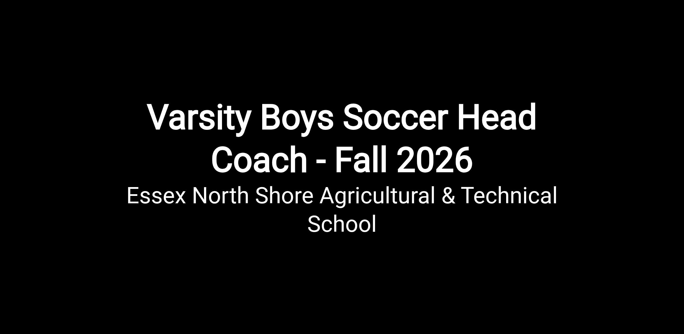 Essex North Shore Agricultural & Technical School is seeking a new Varsity Boys Soccer Coach for the 2026 fall season.